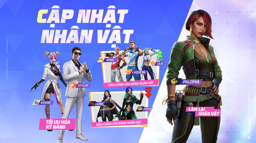 - Alok/Steffie/Skyler/Iris/Tatsuya/Mini drone/UAV Hồi Máu: -30%