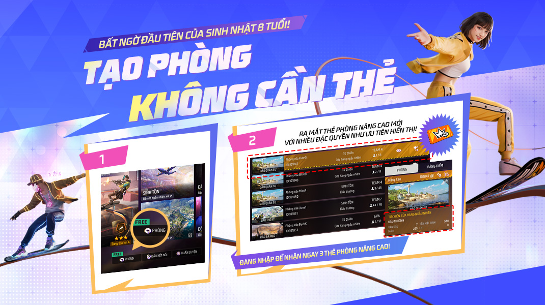 “Giờ ai cũng có thể trải nghiệm mọi tính năng hiện tại của tạo phòng mà không cần thẻ. Ngoài ra, ra mắt Thẻ Phòng Nâng Cao - phòng tạo bởi Thẻ sẽ xuất hiện ở đầu danh sách phòng, và bạn có thể trò chuyện với người chơi khác trong trận!”