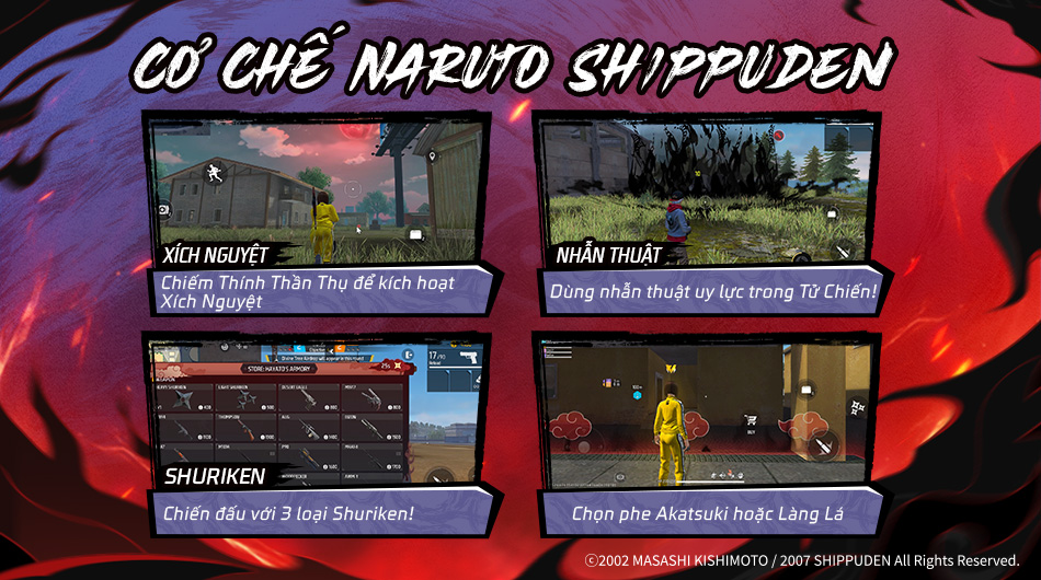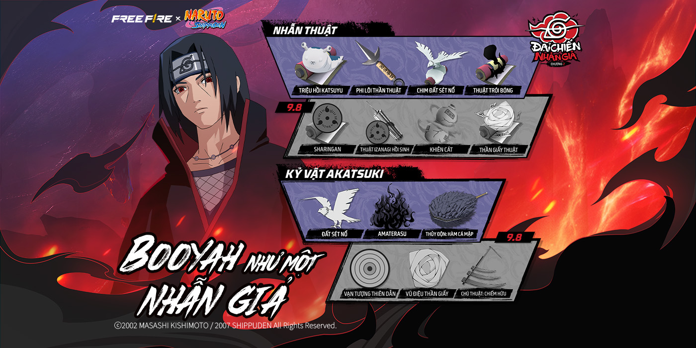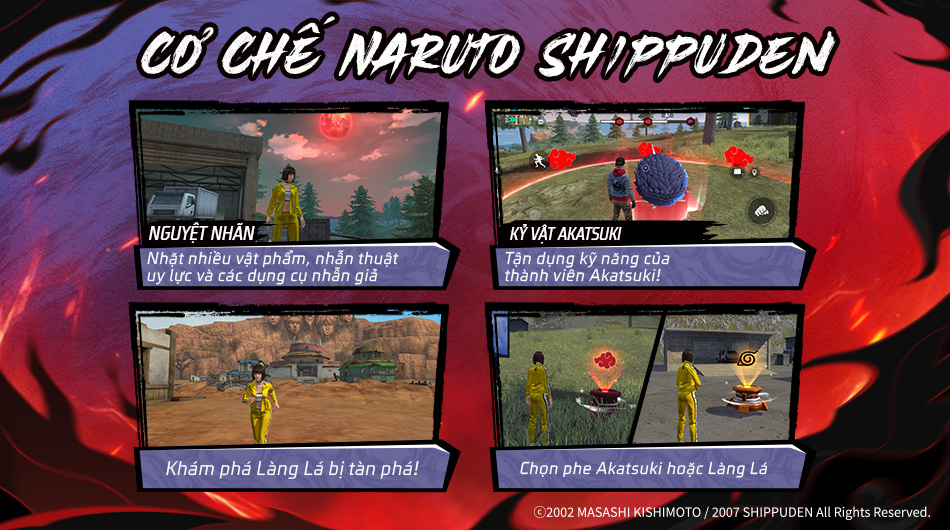 - Hệ thống sẽ ra mắt với vật phẩm từ Chương 1 và 2 của sự kiện NARUTO SHIPPUDEN. Sẽ thêm các nội dung từ trước và trong tương lai sau.